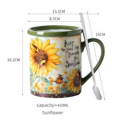 Taza de café de girasol y animales, taza de cerámica para té con leche y Latte