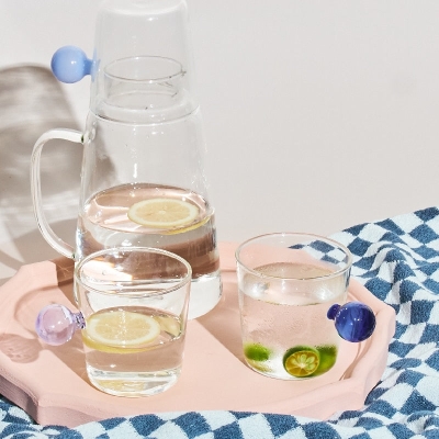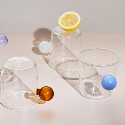 Taza de cristal de estilo nórdico, taza con asa en forma de arco resistente al calor