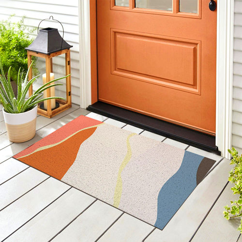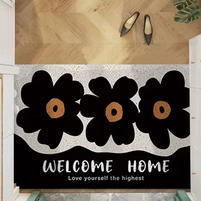 Estera rectangular de puerta en espiral de PVC con margaritas negras y caqui