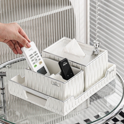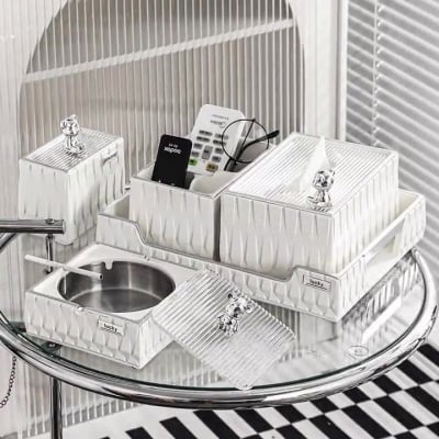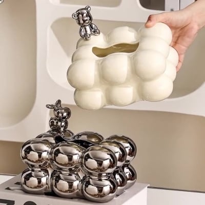 Juego de almacenamiento de soporte para pañuelos de resina blanca y oso simple
