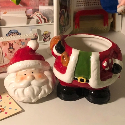 Lata de almacenamiento de Papá Noel, linda decoración de escritorio para casa de vacaciones, contenedor de cerámica