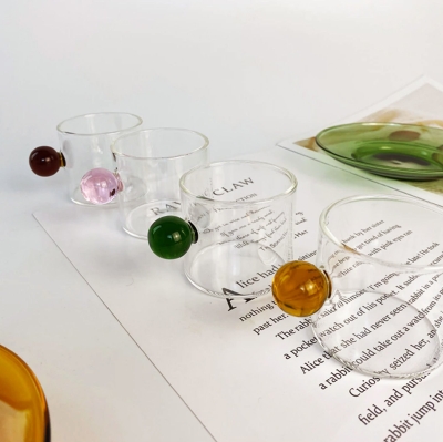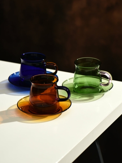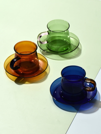 Taza de cristal de estilo nórdico con platillo, taza de té y café