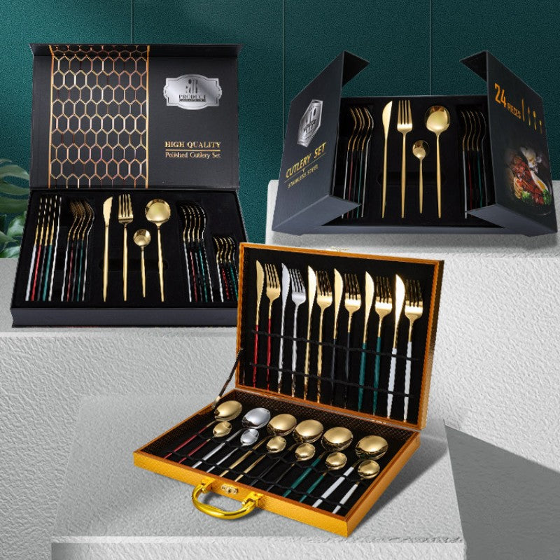 Juego de 24 piezas de cuchara y tenedor de vajilla de acero inoxidable
