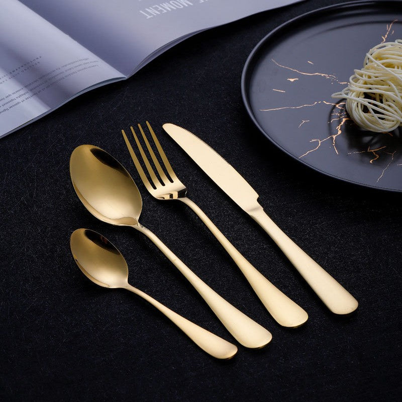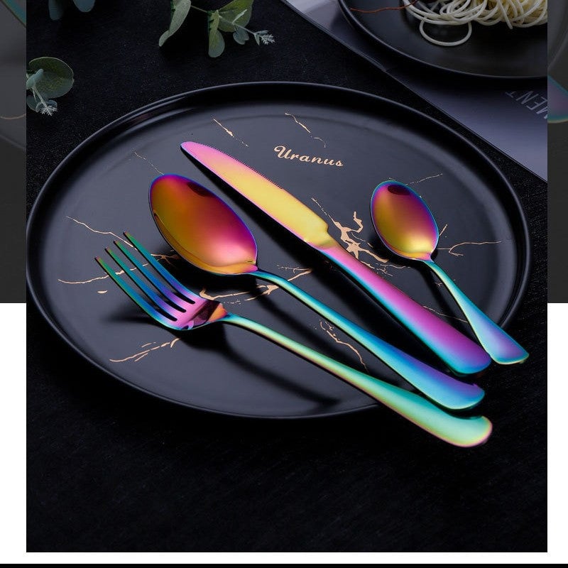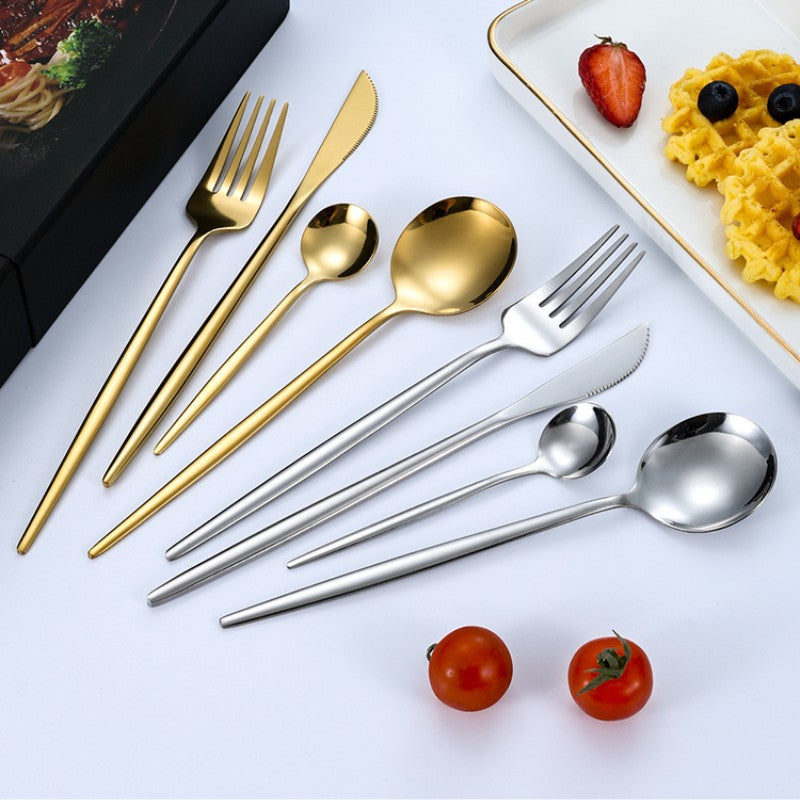 Juego de vajilla de acero inoxidable, cuchillo y tenedor, cuchara